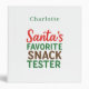 Quote: Santa's Favourite Snack Tester. Personalize and add a name. Red, green and brown text.