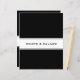 Custom double sided recipe divider page for a black and white cookbook recipe binder; one design of a matching set. Features a simple modern minimalist design in a classic black and white colour palette with customizable text presented on a coordinating white banner with black accents