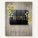 A charming rustic farmhouse recipe organizer cooking book with vintage wood and yellow gold sunflowers bouquets. ++++++++++ Personalize it with chef monogram, name and your text! +++++++++ It can be a modern personal blank recipe journal book for your kitchen, a grandma's family cookbook, or a beautiful custom keepsake gift for a bridal shower, wedding, or family anniversary.