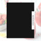 Custom double sided recipe divider page for a black and white cookbook recipe binder. Features a simple modern minimalist design in a classic black and white colour palette with customizable text presented on a coordinating tab.