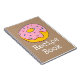 Food art with hand drawn illustration of a pink icing doughnut. Cute food design for a recipe book.