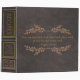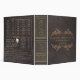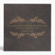 Customizable recipe organizer designed to look like an old leather hard bound book. the front cover has a leaf design that encircles a food quote by Virginia Woolf. The back of this recipe organizer has handy tables to help with measurement conversions, ingredient substitutions and more. The gold colored text is the perfect complement to the faux aged leather background.