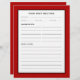 Double-sided recipe page designed to coordinate with a matching 3-ring recipe organizer binder. A simple minimalist design in a modern red, black and white colour palette, titled main dish recipes with serving information, prep time, cook time, ingredients and directions. All of the information you need for your main dish recipes on the front and back. Designed as an editable template and shown with main dish recipes, you can customize using the fields provided or use the "message" button to contact the designer for help.