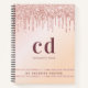 A stylish girly and feminine rose gold and blush pink gradient background decorated with rose gold faux glitter drips, paint dripping look. Personalize and add your name, monogram initials and a title. The title inside the faux glitter ribbons. Rose gold coloured text.