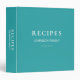 Recipes, Personalized Elegant Turquoise, Binder