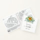 A white background. Decorated with sunflowers, eucalyptus greenery. Add a name, text. The name is written with a modern hand lettered style script with swashes.
