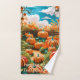 Cette serviette Citrouille Patch Harvest Hand Towel reflète l'esprit cosy de l'automne avec un style de papier découpé dynamique illustrant un champ de citrouille abondant. Des citrouilles d'orange vif aux tiges turquoises s'installent au milieu de vignes verdoyantes, encadrées par un ciel bleu brillant aux nuages blancs et moelleux. Parfait pour les salutations de Thanksgiving, les rassemblements d'automne, ou l'envoi de joie saisonnière, cette serviette apporte la chaleur et le charme de la saison des récoltes à des amis et à la famille.