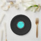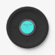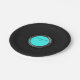 These fun paper plates feature a black vinyl record album with a turquoise label. Easily customize the label text.