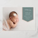 Simple faire-part de naissance moderne dispose d'une seule photo horizontale à fond saigné ou à orientation paysage avec une bannière rose en feuille d'or taillée en haut à droite, portant le nom du bébé, la date de naissance et les statistiques de naissance. Ajoutez un message personnel à l'arrière, ainsi que trois photos carrés supplémentaires.