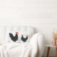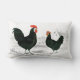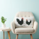 Reposez avec l'image vintage d'une poule noire et d'un coq. L'arrière du coussin est un contrôle noir et blanc.