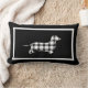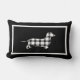 Coussin lombaire avec l'image d'un teckel dans une conception noire et blanche de plaid, encadrée par une bande blanche. L'arrière du coussin est noir solide.