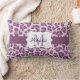 La conception d'empreinte de léopard a personnalisé le coussin lombaire dans le pourpre et la lavande avec une rayure pourpre, blanc bordé avec la bannière pourpre que vous pouvez customiser avec votre initiale de nom et de monogramme !