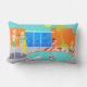 Avancé dedans ! L'eau est très bien ! Ce coussin lombaire de rétro réception au bord de la piscine comporte un dessin vibrant, de bande dessinée d'un amusement et une réception au bord de la piscine sophistiquée. Les centres de conception moderne de la moitié du siècle autour d'une piscine ronde sur un grand, gris, concret patio. La piscine est remplie avec de l'eau turquoise. La brique orange entoure la piscine et il y a un blanc, panneau de plongée de planche tout prêt pour une âme aventureuse. Un ballon de plage rouge et blanc flotte dans l'eau. Du bord opposé de la piscine, deux partie-amateurs balancent leurs pieds dans l'eau, tout en se reposant sur les serviettes de plage rayées rouges et blanches. La femme avec les cheveux noirs porte un rose, maillot de bain en un seul morceau. Près de elle est une boisson tropicale dans une noix de coco avec un petit parapluie et une paille verte. L'homme blond porte les troncs lumineux et verts. Il est donné un coup de pied a soutenu avec ses mains derrière sa tête. À la gauche de la piscine, est un homme distingué avec des troncs de bain de cheveux blancs et de jade tenant une boisson dans une coquille de noix de coco. Nous savons qu'il a distingué parce qu'il est un homme avec les cheveux blancs ! Il parle à une femme avec des cheveux blonds et un chiffre de sablier utilisant un maillot de bain de turquoise. Lancée à travers son bras est une serviette de plage jaune. Derrière cette scène est la silhouette verte d'un palmier et d'un futuriste, orange, maison de brique. Par le grand, plancher au plafond, vitraux bleus, vous pouvez voir la silhouette d'une télévision, d'une chaise, d'un tabouret, et d'une horloge de starburst. Le ciel derrière la maison est une turquoise sans nuages avec un soleil rond et jaune. Le bord opposé du coussin comporte un motif orange de brique.