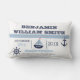 Cette caractéristique de coussin de commémoration de naissance un bateau à voile, une ancre, une corde et une barre mignons. La conception inclut également une ceinture bleu-clair et quelques lignes de démarcation. Le dos du coussin comporte un motif bleu-clair et blanc rayé et une ancre. Le coussin est prêt à être personnalisé et est idéal comme coussin de commémoration de naissance de crèche et est particulièrement approprié à une salle nautique de thème.