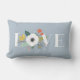 Rectangle Floral Love Valentine's Day Lumbar Coussin - Bleu