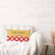 Le coussin de chiroprakteur retiré par amusement en rouge et jaune avec le pois, "coussin officiel de petit somme a retiré le chiroprakteur". De retour du coussin en couleurs coordonnées et grand pois.