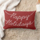 Ce coussin est enveloppé de bons voeux pour la saison des fêtes. Les lumières à double-vitrage font passer le message "Happy Holidays" contre l'arrière - plan rouge canneberge et les couleurs monochromes rendent la décoration plus agréable et plus festive. Un de mes favoris. Faites défiler vers le bas pour voir l'oreiller de coordination lancer.