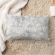 Coussin lombaire de Noël décoré sur mesure avec "Let it Snow" ou votre texte personnalisé dans un script de brosse moderne / calligraphie à la main sur une parties scintillant argentée / arrière - plan enneigé de livre gris.