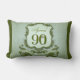 Quatre-vingt-dixième coussin vintage et élégant d'anniversaire en vert avec les frontières personnalisables de couleur. Grand nombre avec l'ombre de baisse (non personnalisable). Vous pouvez seulement changer le nom et le texte (dans le dos). Disponible dans le pourpre.