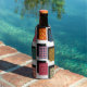 This bottle cooler has a Bauhaus design of rectangles with designs inside and their shadows behind.
