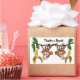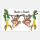 Adorable drôle singes pendants mangeant des bananes dessin animé est un autocollant de remerciement unique et amusant qui dit : Merci un tas.. N'oubliez pas de consulter tous les différents modèles sur http://www.zazzle.com/inspirationrocks* et http://www.zazzle.com/naturesmiles*