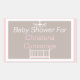 Élégant Sticker Rectangle Baby shower Chandelier En Rose. Ces adorables autocollants de baby shower célèbrent une petite fille avec un arrière - plan rose clair, blanc et marron décoré d'un lit d'enfant blanc et d'un lustre.