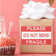 Sticker dit S'il vous plaît ne pliez pas Fragile dessus.