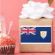 Le drapeau national d'Anguilla, un territoire britannique d'outre-mer, est constitué d'une enseigne bleue avec le drapeau britannique dans le canton, chargé des armoiries d'Anguilla à la mouche. Les armoiries sont composées de trois dauphins en formation circulaire, qui ont été présentés sur le drapeau Anguillan précédent, et qui représentent l'amitié, la sagesse et la force. Le blanc dans l'arrière - plan est synonyme de paix, et le bleu représente la mer, ainsi que la foi, la jeunesse et l'espoir.