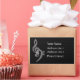 Un sticker rectangle à thème de musique simple noir/blanc classe - treble blanc et clés de basse contre un arrière - plan noir texturé. Personnalisez-le avec vos coordonnées personnelles ! Amour Musique.