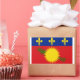 La Guadeloupe, une région d'outre-mer et département de France située dans les Caraïbes, n'a pas de drapeau officiel autre que le drapeau national français. En plus du drapeau français, un logo régional inscrit sur un champ blanc est souvent utilisé comme drapeau régional, comme à Mayotte et à La Réunion. Le logo de la Guadeloupe montre un soleil stylisé et un oiseau sur un carré vert et bleu avec l'indice REGION GUADELOUPE souligné en jaune.
