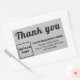 Autocollant personnalisable avec textes de Merci pour apprécier l'achat ou le support de vos clients ou clients. Vous pouvez également l'utiliser comme matériel de marketing pour faire de la publicité pour votre entreprise et pour promouvoir votre marque de commerce ou pour sensibiliser votre marque. Les dessins sont des textes noirs en forme d'arrière - plan gris et de rectangle. Pour customiser cet autocollant, téléchargez votre logo d'entreprise, tapez votre nom d'entreprise ou de société, votre adresse et votre numéro de téléphone. Après avoir téléchargé le logo et tapé des textes, veuillez vérifier l'apparence. Si l'apparence vous plaît, vous pouvez passer votre commande maintenant. Si vous avez besoin de redimensionner et déplacer le logo et les textes pour tenir sur cet autocollant, s'il vous plaît changer dans l'outil de conception. Vous pouvez également effectuer d'autres modifications en fonction de l'apparence que vous préférez dans l'outil de conception, comme changer la couleur arrière - plan, la couleur de police et le style de police.