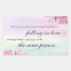 Un autocollant brillant avec une citation sur le mariage disant "Un mariage réussi nécessite de tomber amoureux plusieurs fois avec la même personne".La citation est dans une police personnalisée de couleur noire sur le dessus de rose, gris et turquoises couleurs pastel avec des formes de fleurs roses dans les coins.