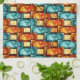 Rectangular plates carved and stained, orange cyan kitchen towel