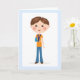 Carte de voeux avec un petit garçon de bande dessinée avec son bras cassé dans un plâtre et une fronde. Texte à l'intérieur : Je vous souhaite une reprise rapide!