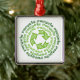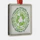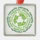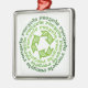 Recycle sign custom ornament featuring a circle made of the word recycle in gradient shades of green and the recycling sign in the centre.