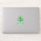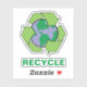 Custom contour cut vinyl sticker featuring planet Earth, the green recycling symbol and the caption “RECYCLE”.