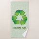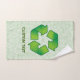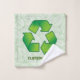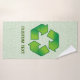 Recycling symbol with woodcut shade over leaves seamless background. Custom text.