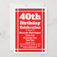 Red 40th Birthday Invitation