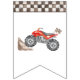 Elevate your child's birthday celebration with our dynamic Red 4 Wheeler Bunting Banner! This eye-catching banner is specially designed to bring excitement to kids' birthday parties. It features a vibrant red quad bike image with a chequered flag trailing behind.