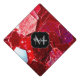 Red abstract mosaic shiny glitter pattern Monogram Graduation Cap Topper