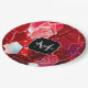 Red abstract mosaic shiny glitter pattern Monogram Paper Plate