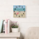 Enjoy a painting of a sandy beach and ocean with an abstract painting of a sand crab, with red swirls on it, on the beach. There are gentle waves in the background. The clock also features large black numbers. Purchase at CherylsArt on Zazzle.