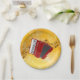 Red Accordion, Musical Notes on Gold Background Paper Plate