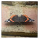 This awesome tile features a photograph of a beautiful Red Admiral Butterfly (Vanessa atalanta). This species is mainly black with white spots and beautiful red bands on its wings. The photo shows the butterfly, with its wings wide open, resting on a brick wall looking at the camera. The photograph was taken using macro photography for a detailed result.