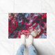 This red agate crystal geode inspired abstract design features bright scarlet red, deep ruby red, black, cerulean blue and creamy off-white shades.