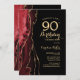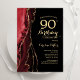 Red, black and gold agate 90th birthday party invitation. Elegant modern design featuring watercolor agate marble geode background, faux glitter gold and typography script font. Trendy invite card perfect for a stylish women's bday celebration. Printed Zazzle invitations or instant download digital printable template.