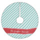 Red and Aqua Preppy Stripes Monogram Brushed Polyester Tree Skirt