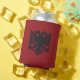 Red can cooler with black Albanian eagle design