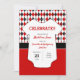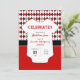 Oversized elegant argyle pattern in school colours of red and black set the backdrop for this cute baby photo announcement. A white baby bodysuit has all the text written on it to give details about your new baby. Back side includes a photo. Design comes in maroon and grey, burnt orange and grey, red and black, green and black, orange and navy, green and yellow, and purple and grey. Matching products available.