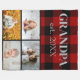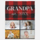 This custom blanket features a wholesome and rustic theme. The background is a red and black chequered, Bufalo plaid pattern. The title for grandpa is printed at the top with the year established. Four photographs are pictured at the bottom which you can replace with your own photos of the grandkids.